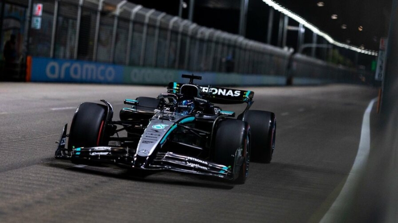 Пилот Mercedes Джордж Рассел одержал вторую победу в сезоне на Гран При Сингапура. Макс Ферстаппен финишировал вторым, а Ландо Норрис третьим. Ферстаппен стал единственным пилотом в топ-5, который выбрал Soft. Однако это не помогло голландцу пройти стартовавшего с поула Рассела. Норрис провёл потрясающий старт и закончил первый круг на третьей позиции, опередив Антонелли и Пиастри. При этом между пилотами McLaren произошёл контакт в третьем повороте. Леклер обогнал Хэмилтона и Антонелли, ворвавшись в топ-5. К десятому кругу преимущество Рассела над Ферстаппеном достигло пяти секунд. При этом пилот Red Bull жаловался по радио на проблемы с переключением передач. Спустя несколько кругов Ферстаппен начал терять темп, и его отставание достигло восьми секунд. При этом первым в боксы позвали Норриса – очевидно, пытаясь вынудить Red Bull отреагировать – однако в итоге британца попросили остаться на трассе. На 20-м круге Ферстаппен свернул на пит-лейн: он получил Hard и вернулся на трассу седьмым. Норрис начал отыгрывать время у Рассела, пытаясь сократить десятисекундное отставание. Следующим в боксы позвали Леклера – он вернулся десятым на Hard. На 25-м круге шины сменил Хэмилтон, на 26-м – Рассел и Антонелли. Британец вернулся третьим, в девяти секундах позади Пиастри. На 27-м круге шины сменил Норрис, однако оверкат не сработал, и вернулся он позади Ферстаппена, причём с отставанием в четыре секунды. Пиастри заехал на следующем круге – однако на этот раз заминка произошла на стороне гаража австралийца, и вернулся на трассу он, уступая напарнику почти десять секунд. После пит-стопов Ферстаппен начал приближаться к Расселу, при этом Норрис не догонял голландца – между ними сохранялся разрыв в четыре секунды, который сократился вдвое после ошибки Ферстаппена на 37-м круге. С этого момента британец начал уверенно сокращать отставание. К 43-му кругу три гонщика продолжали заезд на стартовых комплектах шин – Лоусон, Сайнс и Албон. Первым избавился от Medium Албон, вернувшись последним. Лоусон и Сайнс остались в ожидании машины безопасности, и Хюлькенберг едва не подарил им этот шанс, потеряв машину в седьмом повороте. Однако пилот Sauber избежал столкновения со стеной и продолжил гонку. Норрис к этому времени приблизился к Ферстаппену на дистанцию атаки. Хэмилтон же на 47-м круге заехал на второй пит-стоп, поскольку его преимущество над Лоусоном составляло почти минуту; он получил Soft, вернувшись с отставанием в 20 секунд. Однако он начал быстро догонять, установив новый гоночный рекорд Сингапура – 1.33,808. За 12 кругов до финиша Лоусон свернул в боксы, и Сайнс остался единственным на старых шинах, продолжая двигаться девятым. Испанец получил Soft на 51-м круге, потеряв шесть позиций. На 55-м круге Антонелли обогнал Леклера, а Хэмилтон приблизился к монегаску на дистанцию атаки на своих мягких шинах. Леклер пропустил напарника, и тот пустился вдогонку за Антонелли. Сайнс же прорвался вперёд, вернувшись в очковую зону после старта последним. Достигнув зоны атаки, Хэмилтон резко начал отставать, потом сообщив по радио о проблемах с тормозами. На этом же круге он обратно пропустил напарника – до Алонсо 46 секунд, но он разом потерял пять. В итоге британец пересек финишную черту седьмым, с преимуществом в полсекунды над Алонсо, который атаковал семикратного чемпиона на последнем круг