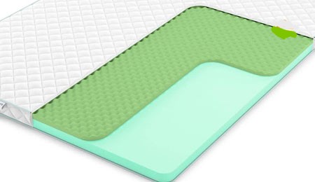- Беспружинные (наматрасники из ППУ, латекса, кокоса) — отличаются ортопедичностью, гипоаллергенностью и тишиной при эксплуатации.