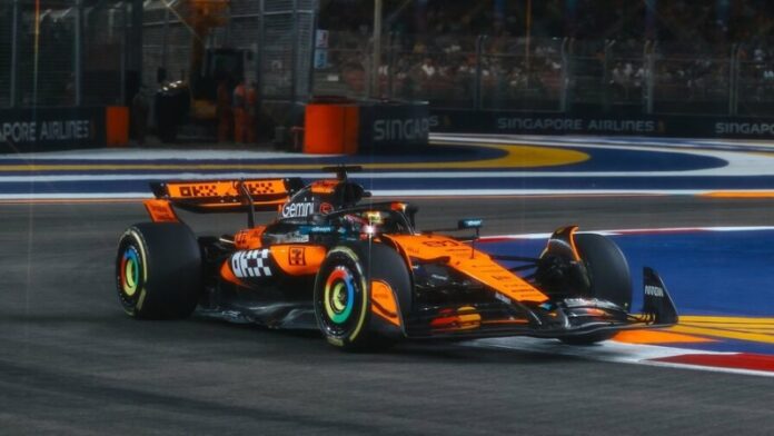 Пилот McLaren Оскар Пиастри показал лучшее время во второй тренировке Гран При Сингапура. Вторым стал Исак Хаджар из Racing Bulls, опередив своего коллегу из старшей команды Red Bull Макса Ферстаппена. Пиастри проехал круг за 1.30,714 секунды, опередив Хаджара на 0,132 секунды. Ферстаппен уступил лидеру 0,143 секунды. Лидер первой тренировки Фернандо Алонсо показал четвёртое время, а Ландо Норрис замкнул топ-5, не собрав круг. Представители Ferrari Шарль Леклер и Льюис Хэмилтон, несмотря на хороший темп в прошлой сессии, остались лишь на девятом и десятом местах соответственно. Сессия была наполнена различными инцидентами: сперва свою машину в 16-м повороте разбил Джордж Рассел, из-за чего тренировка была приостановлена красными флагами; через несколько минут после возобновления Лиам Лоусон задел стену в 17-м, остановившись на въезде на пит-лейн. За 15 минут до конца сессии во время выезда из боксов Шарль Леклер вынудил Ландо Норриса уворачиваться от столкновения, в результате чего британец задел бетонную стену и сломал торцевую пластину. Оба пилота продолжили тренировку, но монегаск оказался под расследованием из-за ошибки механиков. Результаты
